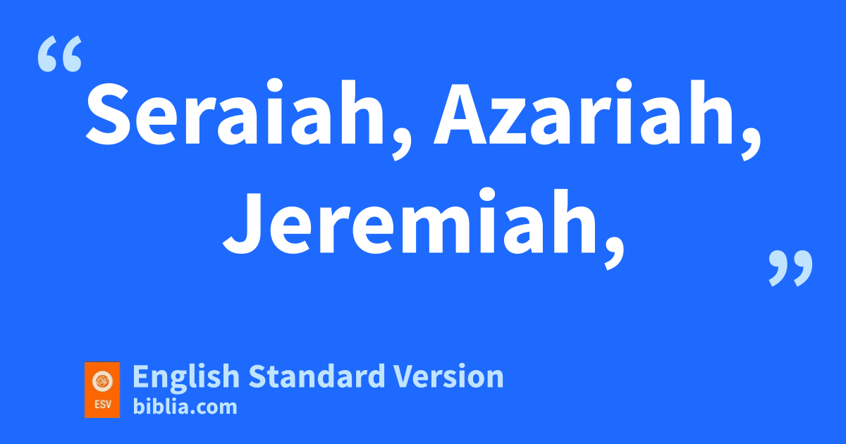 10 1 e“On the seals are the names of2 Nehemiah fthe governor, gthe son of Hacaliah, Zedekiah, 2 hSeraiah, Azariah, Jeremiah, 3 Pashhur, Amariah, Malchijah, 4 iHattush, Shebaniah, Malluch, 5 Harim, Meremoth, Obadiah, 6 Daniel, Ginnethon, Baruch, 7 Meshullam, Abijah, Mijamin, 8 Maaziah, Bilgai, Shemaiah; these are the priests. 9 And the Levites: jJeshua the son of Azaniah, Binnui of the sons of kHenadad, Kadmiel; 10 and their brothers, Shebaniah, Hodiah, Kelita, Pelaiah, Hanan, 11 Mica, Rehob, Hashabiah, 12 Zaccur, Sherebiah, Shebaniah, 13 Hodiah, Bani, Beninu. 14 The chiefs of the people: lParosh, Pahath-moab, Elam, Zattu, Bani, 15 Bunni, Azgad, Bebai, 16 Adonijah, Bigvai, Adin, 17 Ater, Hezekiah, Azzur, 18 Hodiah, Hashum, Bezai, 19 Hariph, Anathoth, Nebai, 20 Magpiash, Meshullam, Hezir, 21 Meshezabel, Zadok, Jaddua, 22 Pelatiah, Hanan, Anaiah, 23 Hoshea, Hananiah, Hasshub, 24 Hallohesh, Pilha, Shobek, 25 Rehum, Hashabnah, Maaseiah, 26 Ahiah, Hanan, Anan, 27 Malluch, Harim, Baanah.
