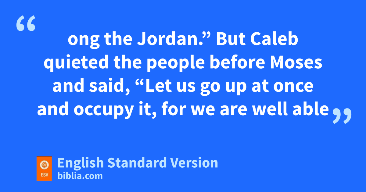 30 But cCaleb quieted the people before Moses and said, “Let us go up at once and occupy it, for we are well able to overcome it.” 31 dThen the men who had gone up with him said, “We are not able to go up against the people, for they are stronger than we are.” 32 So ethey brought to the people of Israel a bad report of the land that they had spied out, saying, “The land, through which we have gone to spy it out, is a land that devours its inhabitants, and fall the people that we saw in it are of great height. 33 And there we saw the gNephilim (the sons of Anak, who come from the gNephilim), and we seemed to ourselves hlike grasshoppers, and so we seemed to them.”