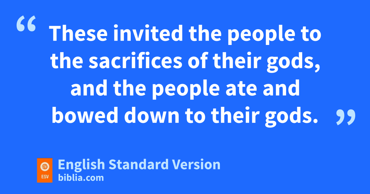25 While Israel lived in eShittim, fthe people began to whore with the daughters of Moab. 2 gThese invited the people to the sacrifices of their gods, and the people ate and bowed down to their gods. 3 So Israel yoked himself to Baal of Peor. And the anger of the Lord was kindled against Israel. 4 And the Lord said to Moses, h“Take all the chiefs of the people and ihang1 them in the sun before the Lord, jthat the fierce anger of the Lord may turn away from Israel.” 5 And Moses said to kthe judges of Israel, l“Each of you kill those of his men who have yoked themselves to Baal of Peor.”