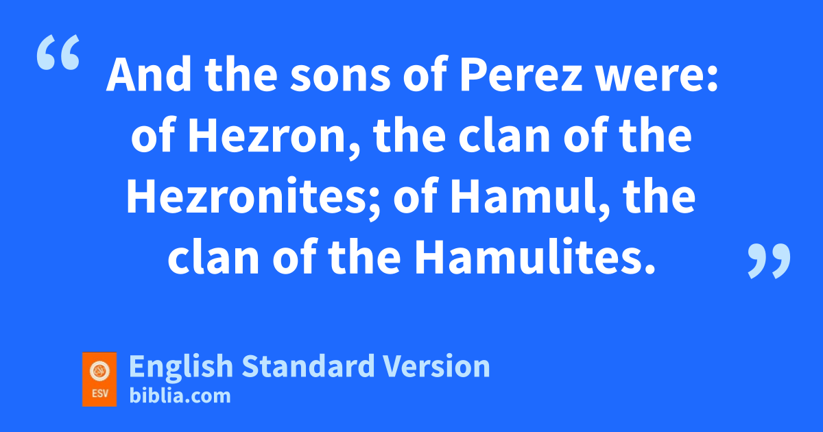 19 The sons of nJudah were Er and Onan; and Er and Onan died in the land of Canaan. 20 And the sons of Judah according to their clans were: of Shelah, the clan of the Shelanites; of Perez, the clan of the Perezites; of Zerah, the clan of the Zerahites. 21 And the sons of Perez were: of Hezron, the clan of the Hezronites; of Hamul, the clan of the Hamulites. 22 These are the clans of Judah as they were listed, o76,500.