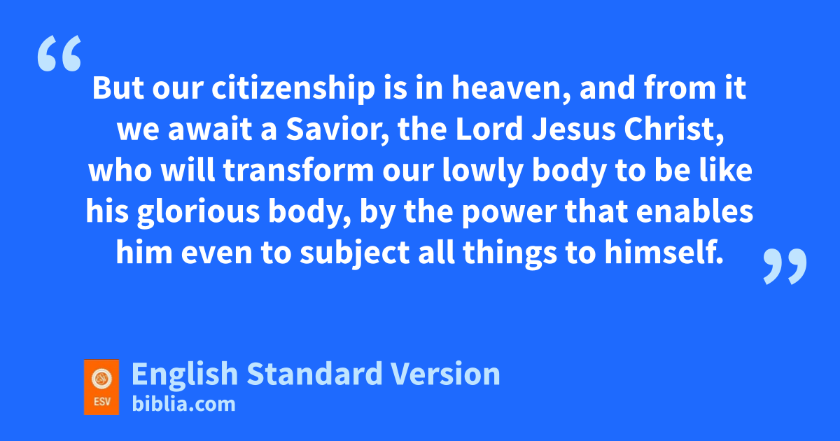17 Brothers, ujoin in imitating me, and keep your eyes on those who walk vaccording to the example you have in us. 18 For wmany, of whom I have often told you and now tell you xeven with tears, walk as enemies of the cross of Christ. 19 yTheir end is destruction, ztheir god is their belly, and athey glory in their shame, with bminds set on earthly things. 20 But cour citizenship is in heaven, and dfrom it we eawait a Savior, the Lord Jesus Christ, 21 who will transform four lowly body gto be like his glorious body, hby the power that enables him even ito subject all things to himself.