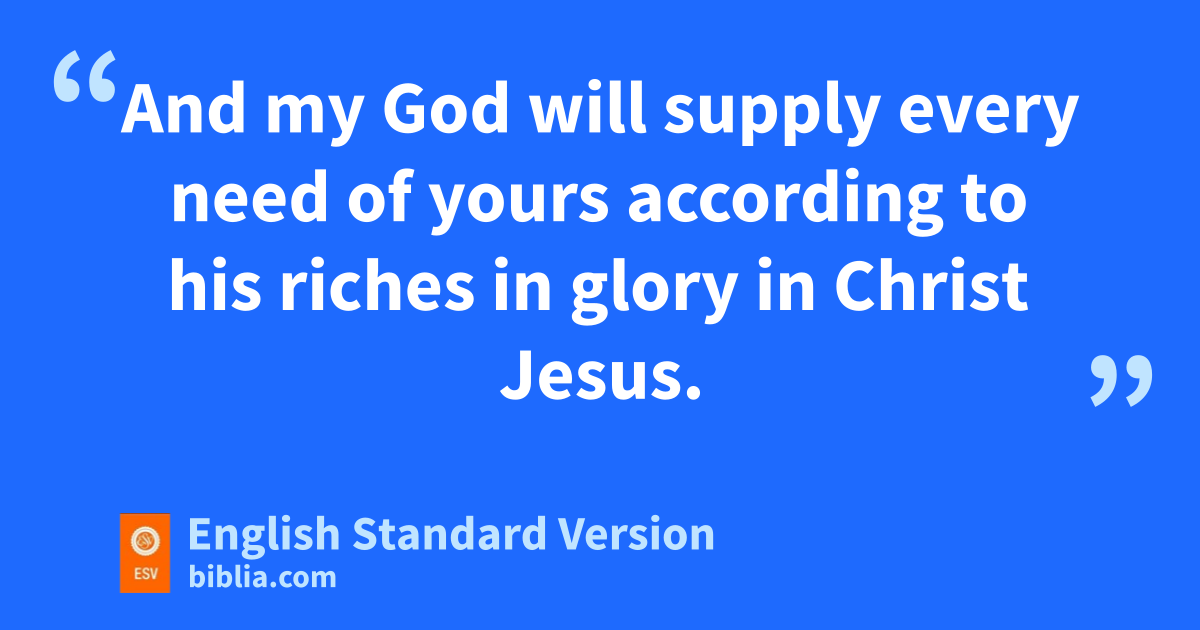 14 Yet it was kind of you eto share6 my trouble. 15 And you Philippians yourselves know that fin the beginning of the gospel, when I left Macedonia, gno church entered into partnership with me in giving and receiving, except you only. 16 Even in Thessalonica you sent me help for my needs once and again. 17 hNot that I seek the gift, but I seek ithe fruit that increases to your credit.7 18 I have received full payment, and more. I am well supplied, jhaving received from Epaphroditus the gifts you sent, ka fragrant offering, la sacrifice acceptable and pleasing to God. 19 And my God mwill supply every need of yours naccording to his riches in glory in Christ Jesus. 20 To oour God and Father be pglory forever and ever. Amen.