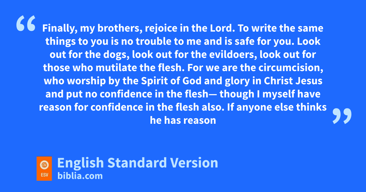 2 Look out for mthe dogs, look out for nthe evildoers, look out for those who mutilate the flesh. 3 For owe are the circumcision, pwho worship qby the Spirit of God2 and rglory in Christ Jesus and put no confidence in the flesh— 4 sthough I myself have reason for confidence in the flesh also. If anyone else thinks he has reason for confidence in the flesh, I have more: 5 tcircumcised on the eighth day, uof the people of Israel, vof the tribe of Benjamin, ua Hebrew of Hebrews; as to the law, wa Pharisee; 6 xas to zeal, ya persecutor of the church; zas to righteousness under the law,3 blameless. 7 But awhatever gain I had, bI counted as loss for the sake of Christ. 8 Indeed, I count everything as loss because of cthe surpassing worth of dknowing Christ Jesus my Lord. For his sake I ehave suffered the loss of all things and count them as rubbish, in order that I may gain Christ 9 and be found in him, not having fa righteousness of my own that comes from the law, but gthat which comes through faith in Christ, the righteousness from God that depends on faith— 10 hthat I may know him and ithe power of his resurrection, and jmay share his sufferings, becoming like him in his death, 11 that by any means possible I may kattain the resurrection from the dead.