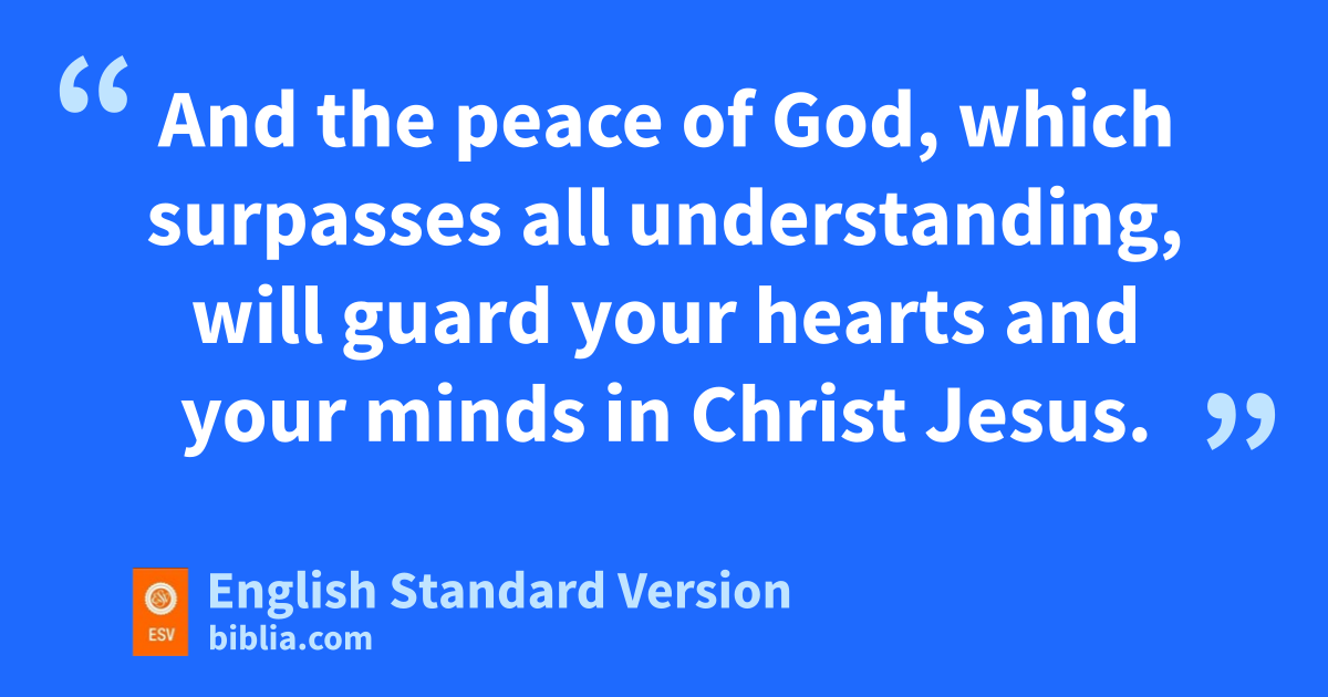 4 pRejoice in the Lord always; again I will say, rejoice. 5 Let your reasonableness4 be known to everyone. qThe Lord is at hand; 6 rdo not be anxious about anything, sbut in everything by prayer and supplication twith thanksgiving let your requests be made known to God. 7 And uthe peace of God, vwhich surpasses all understanding, will guard your hearts and your minds in Christ Jesus.