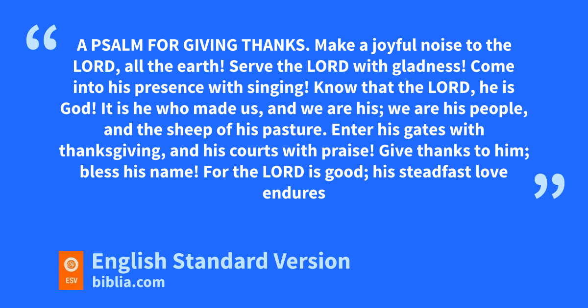 100 A Psalm for ogiving thanks.