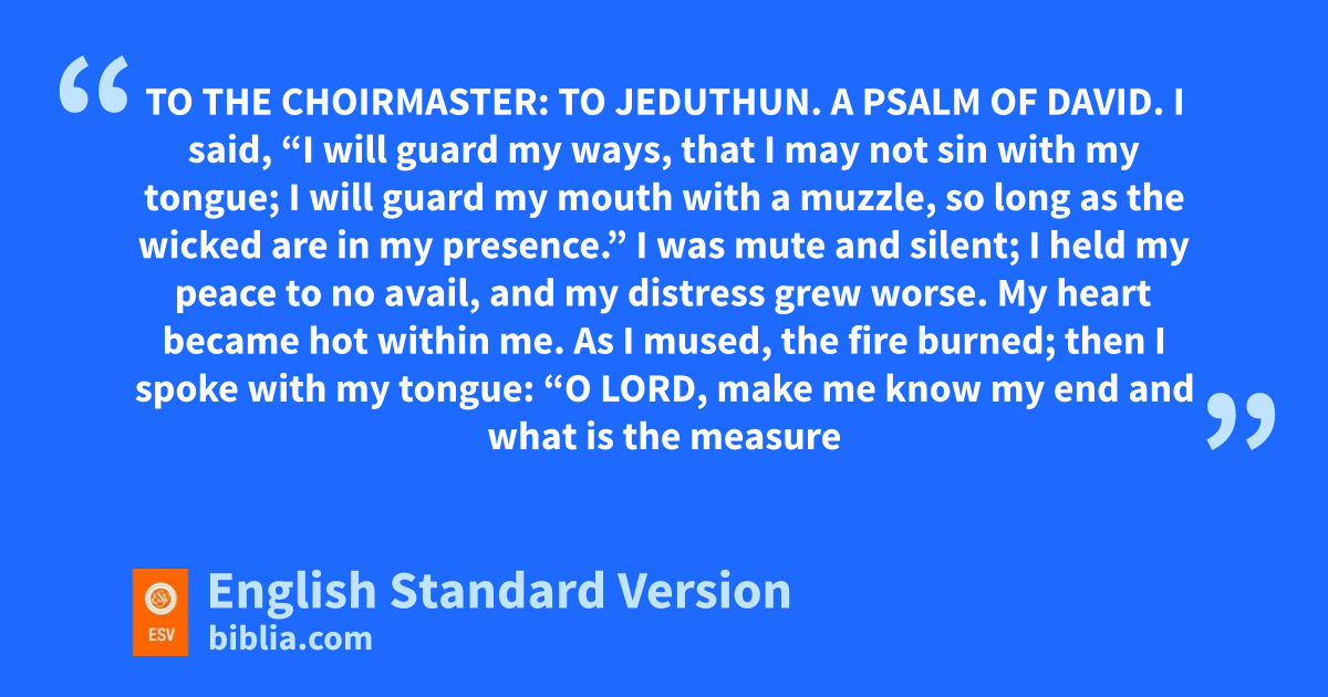 39 To the choirmaster: to vJeduthun. A Psalm of David.