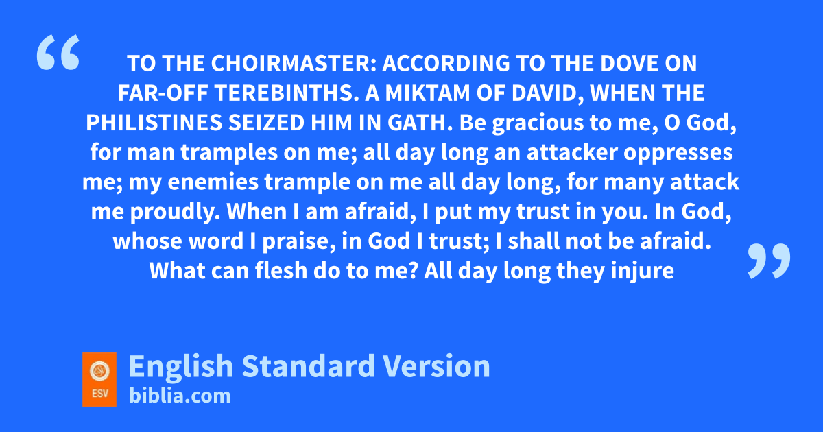 56 To the choirmaster: according to The Dove on Far-off Terebinths. A pMiktam1 of David, when the qPhilistines seized him in Gath.