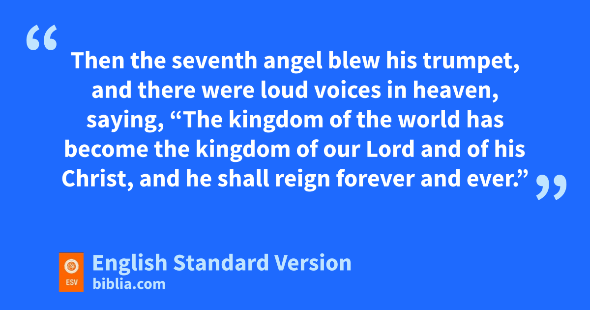 15 Then othe seventh angel blew his trumpet, and pthere were loud voices in heaven, saying, q“The kingdom of the world has become the kingdom of our Lord and of rhis Christ, and she shall reign forever and ever.” 16 And the twenty-four elders twho sit on their thrones before God ufell on their faces and worshiped God, 17 saying,