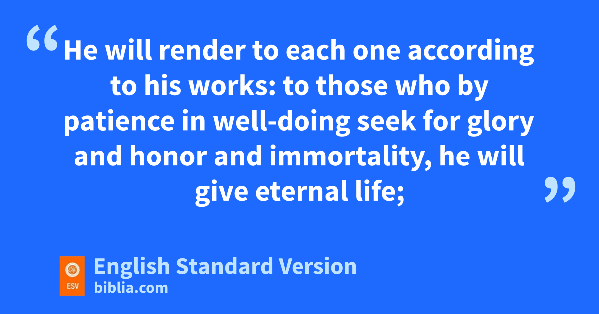 6 nHe will render to each one according to his works: 7 to those who oby patience in well-doing seek for glory and honor and immortality, he will give eternal life; 8 but for those who are self-seeking1 and pdo not obey the truth, but obey unrighteousness, there will be wrath and fury. 9 There will be tribulation and distress qfor every human being who does evil, the Jew rfirst and also the Greek, 10 but glory and honor and speace for everyone who does good, tthe Jew first and also the Greek. 11 For uGod shows no partiality.