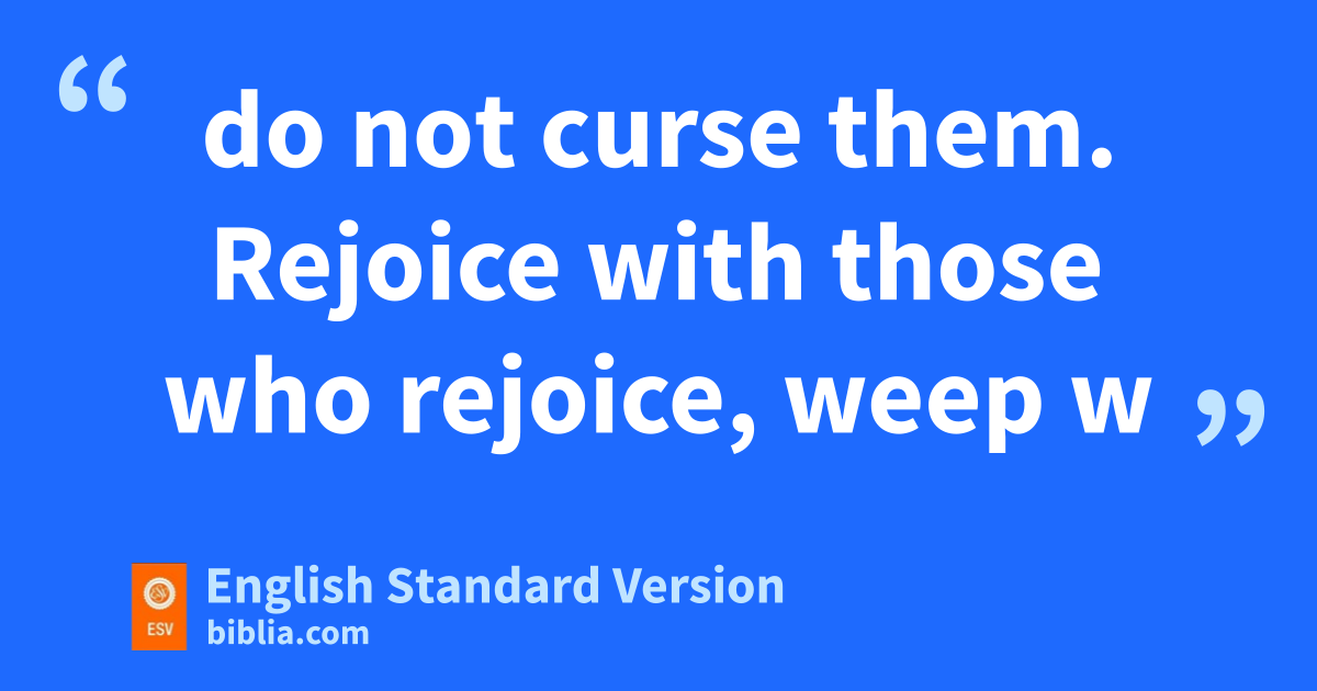 14 eBless those who persecute you; bless and do not curse them. 15 fRejoice with those who rejoice, weep with those who weep. 16 gLive in harmony with one another. hDo not be haughty, but associate with the lowly.8 iNever be wise in your own sight. 17 jRepay no one evil for evil, but kgive thought to do what is honorable in the sight of all. 18 If possible, so far as it depends on you, llive peaceably with all. 19 Beloved, mnever avenge yourselves, but leave it9 to the wrath of God, for it is written, n“Vengeance is mine, I will repay, says the Lord.” 20 To the contrary, o“if your enemy is hungry, feed him; if he is thirsty, give him something to drink; for by so doing you will heap burning coals on his head.” 21 Do not be overcome by evil, but overcome evil with good.