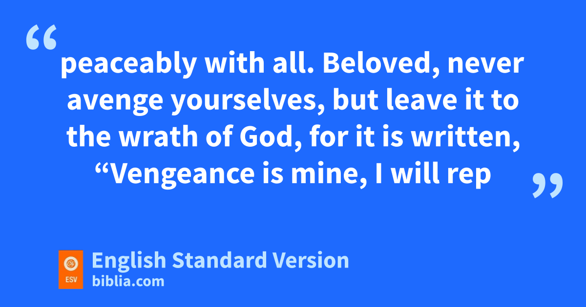 14 eBless those who persecute you; bless and do not curse them. 15 fRejoice with those who rejoice, weep with those who weep. 16 gLive in harmony with one another. hDo not be haughty, but associate with the lowly.8 iNever be wise in your own sight. 17 jRepay no one evil for evil, but kgive thought to do what is honorable in the sight of all. 18 If possible, so far as it depends on you, llive peaceably with all. 19 Beloved, mnever avenge yourselves, but leave it9 to the wrath of God, for it is written, n“Vengeance is mine, I will repay, says the Lord.” 20 To the contrary, o“if your enemy is hungry, feed him; if he is thirsty, give him something to drink; for by so doing you will heap burning coals on his head.” 21 Do not be overcome by evil, but overcome evil with good.