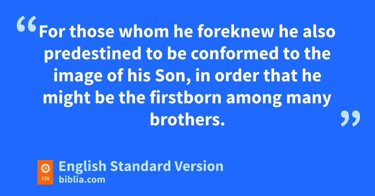 26 Likewise the Spirit helps us in our weakness. For bwe do not know what to pray for as we ought, but cthe Spirit himself intercedes for us with groanings too deep for words. 27 And dhe who searches hearts knows what is ethe mind of the Spirit, because7 the Spirit fintercedes for the saints gaccording to the will of God. 28 And we know that for those who love God all things work together hfor good,8 for ithose who are called according to his purpose. 29 For those whom he jforeknew he also kpredestined lto be conformed to the image of his Son, in order that he might be mthe firstborn among many brothers. 30 And those whom he predestined he also called, and those whom he called he also njustified, and those whom he justified he also oglorified.