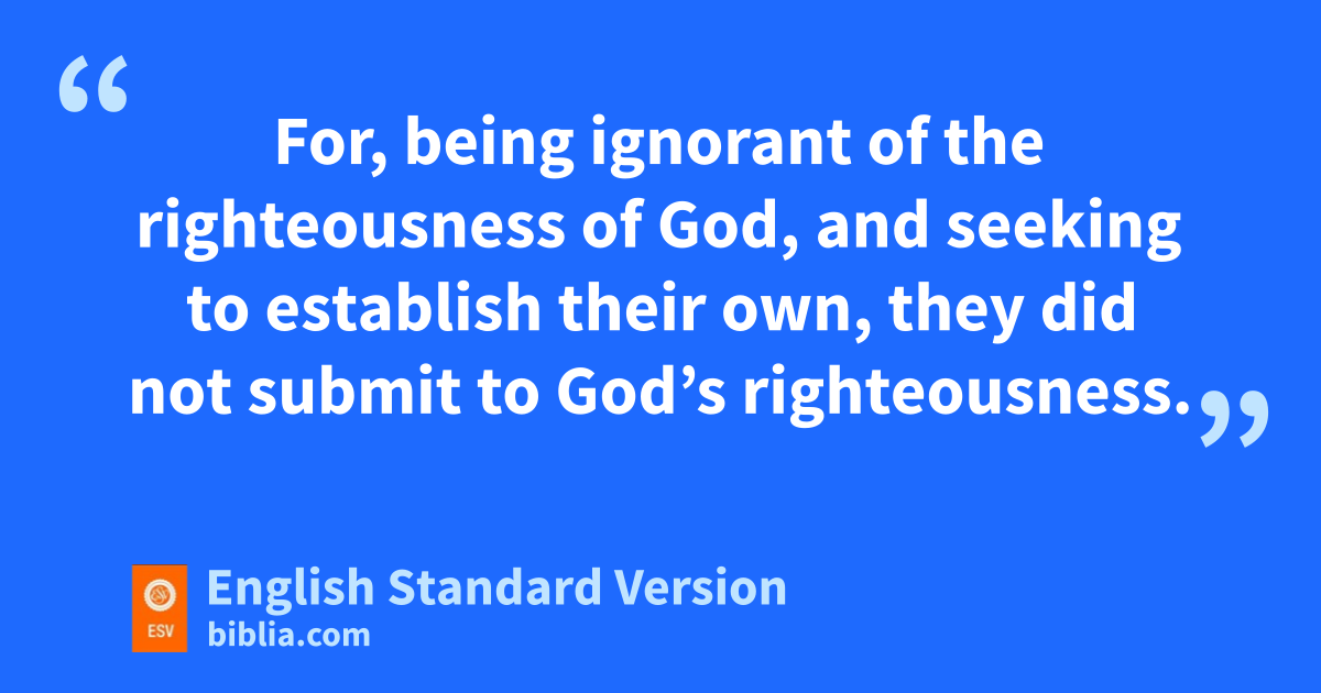 10 Brothers,1 my heart’s desire and prayer to God for them is that they may be saved. 2 For I bear them witness that bthey have a zeal for God, cbut not according to knowledge. 3 For, being ignorant of dthe righteousness of God, and seeking to establish their own, they did not submit to God’s righteousness. 4 For eChrist is the end of the law for righteousness to everyone who believes.2