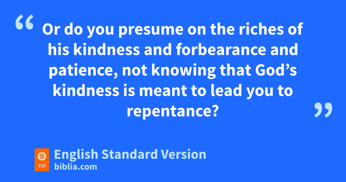 2 Therefore you have fno excuse, O man, every one of you who judges. For gin passing judgment on another you condemn yourself, because you, the judge, practice the very same things. 2 We know that the judgment of God rightly falls on those who practice such things. 3 Do you suppose, O man—you who judge those who practice such things and yet do them yourself—that you will escape the judgment of God? 4 Or do you presume on hthe riches of his kindness and iforbearance and jpatience, knot knowing that God’s kindness is meant to lead you to repentance? 5 But because of your hard and impenitent heart you are lstoring up mwrath for yourself on the day of wrath when God’s righteous judgment will be revealed.