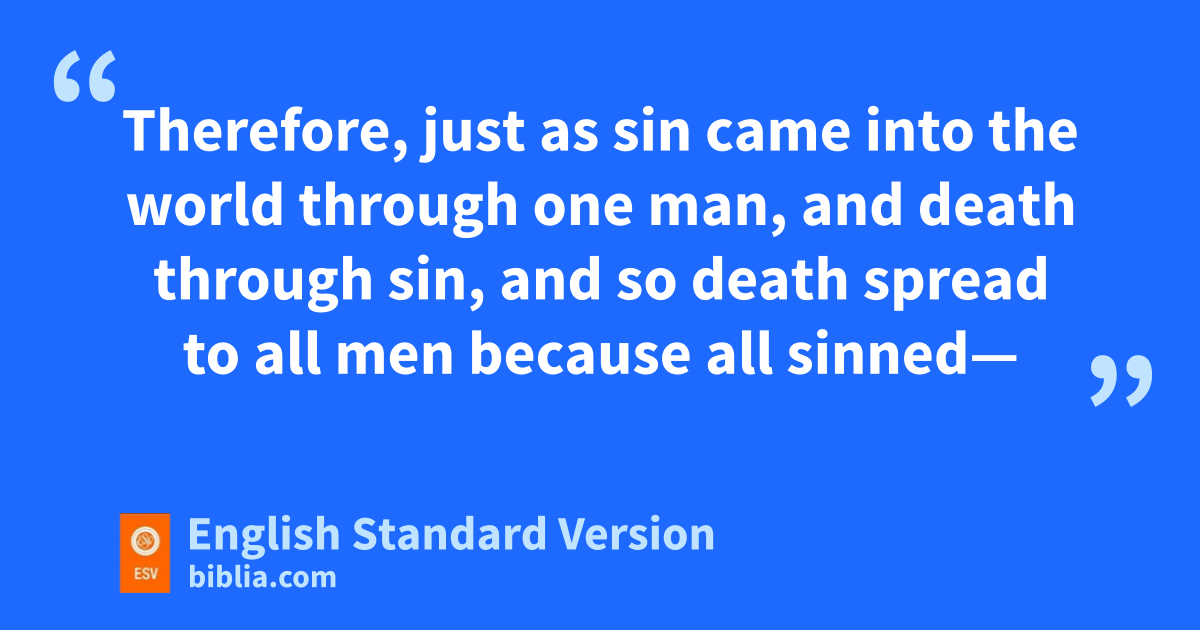 12 Therefore, just as tsin came into the world through one man, and udeath through sin, and vso death spread to all men5 because wall sinned— 13 for sin indeed was in the world before the law was given, but xsin is not counted where there is no law. 14 Yet death reigned from Adam to Moses, even over those whose sinning was not ylike the transgression of Adam, zwho was a type of athe one who was to come.