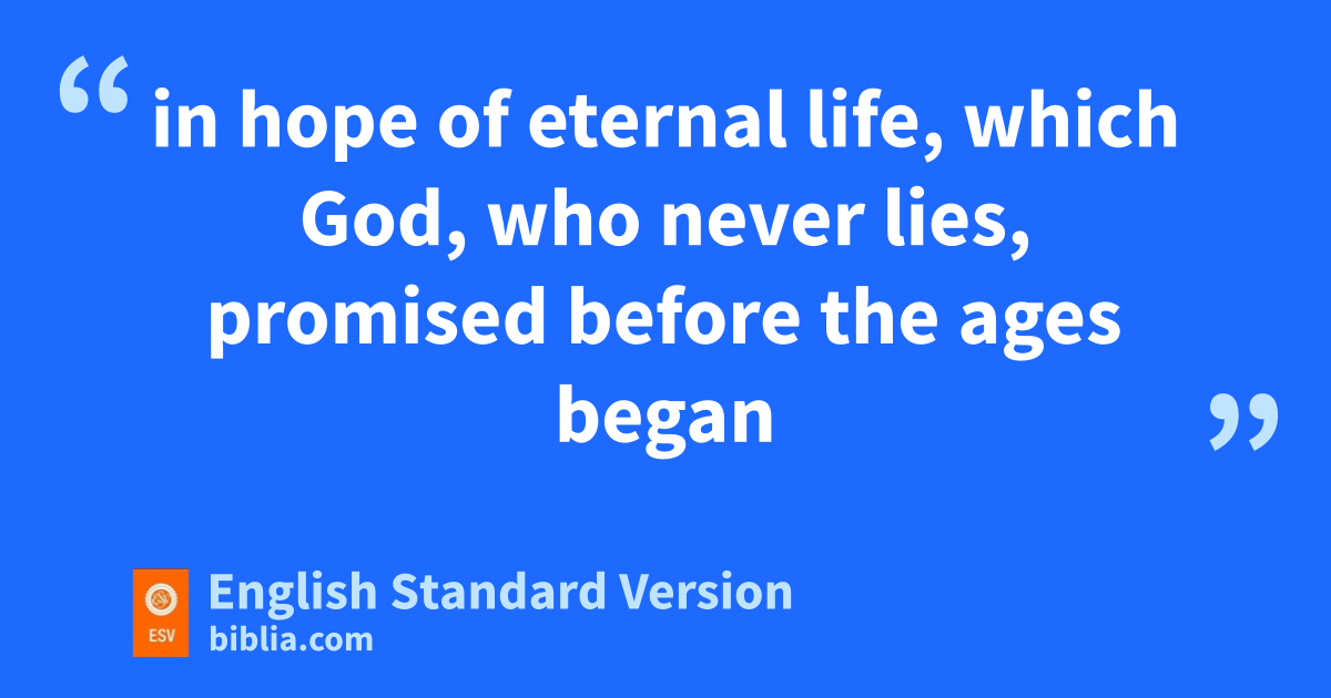 1 Paul, a servant1 of God and aan apostle of Jesus Christ, for the sake of the faith of God’s elect and btheir knowledge of the truth, cwhich accords with godliness, 2 din hope of eternal life, which God, ewho never lies, fpromised gbefore the ages began2 3 and hat the proper time manifested in his word3 ithrough the preaching jwith which I have been entrusted kby the command of God our Savior;
