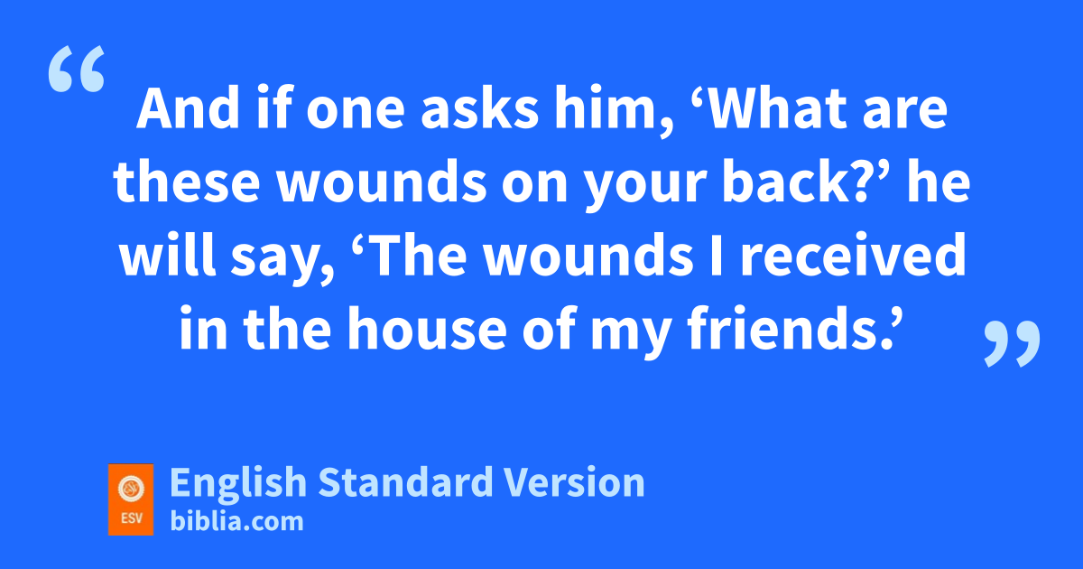4 “On that day oevery prophet will be ashamed of his vision when he prophesies. He will not put on a hairy cloak in order to deceive, 5 but he will say, p‘I am no prophet, I am a worker of the soil, for a man sold me in my youth.’1 6 And if one asks him, ‘What are these wounds on your back?’2 he will say, ‘The wounds I received in the house of my friends.’