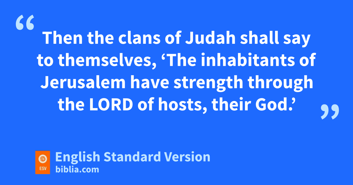12 iThe oracle of the word of the Lord concerning Israel: Thus declares the Lord, jwho stretched out the heavens and kfounded the earth and jformed the spirit of man within him: 2 “Behold, I am about to make Jerusalem la cup of staggering to mall the surrounding peoples. The siege of Jerusalem nwill also be against Judah. 3 oOn that day I will make Jerusalem a heavy stone for all the peoples. pAll who lift it will surely hurt themselves. And mall the nations of the earth will gather against it. 4 oOn that day, declares the Lord, qI will strike every horse rwith panic, and its rider rwith madness. But for the sake of the house of Judah I will keep my eyes open, when I strike every horse of the peoples rwith blindness. 5 Then the clans of Judah shall say to themselves, ‘The inhabitants of Jerusalem have strength through the Lord of hosts, their God.’
