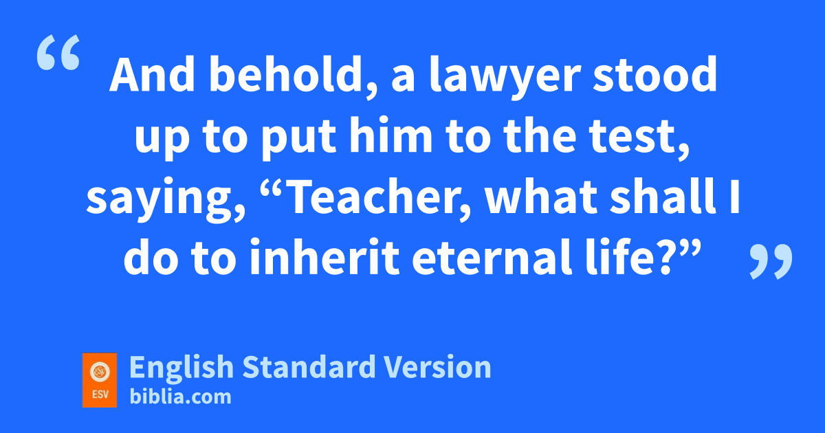 25 oAnd behold, a plawyer stood up to qput him to the test, saying, “Teacher, what shall I do to rinherit eternal life?” 26 He said to him, “What is written in the Law? How do you read it?” 27 And he answered, s“You shall love the Lord your God with all your heart and with all your soul and with all your strength and with all your mind, and tyour neighbor as yourself.” 28 And he said to him, “You have answered correctly; udo this, and you will live.”