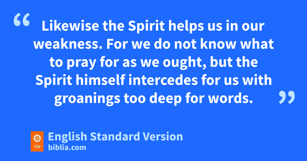 26 Likewise the Spirit helps us in our weakness. For bwe do not know what to pray for as we ought, but cthe Spirit himself intercedes for us with groanings too deep for words. 27 And dhe who searches hearts knows what is ethe mind of the Spirit, because7 the Spirit fintercedes for the saints gaccording to the will of God. 28 And we know that for those who love God all things work together hfor good,8 for ithose who are called according to his purpose. 29 For those whom he jforeknew he also kpredestined lto be conformed to the image of his Son, in order that he might be mthe firstborn among many brothers. 30 And those whom he predestined he also called, and those whom he called he also njustified, and those whom he justified he also oglorified.