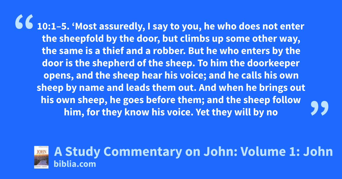 10:1–5. ‘Most assuredly, I say to you, he who does not enter the sheepfold by the door, but climbs up some other way, the same is a thief and a robber. But he who enters by the door is the shepherd of the sheep. To him the doorkeeper opens, and the sheep hear his voice; and he calls his own sheep by name and leads them out. And when he brings out his own sheep, he goes before them; and the sheep follow him, for they know his voice. Yet they will by no