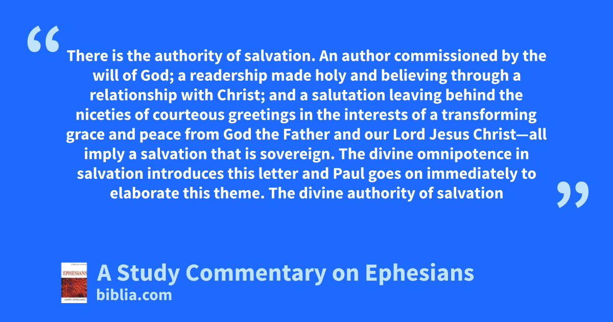 There is the authority of salvation. An author commissioned by the will of God; a readership made holy and believing through a relationship with Christ; and a salutation leaving behind the niceties of courteous greetings in the interests of a transforming grace and peace from God the Father and our Lord Jesus Christ—all imply a salvation that is sovereign. The divine omnipotence in salvation introduces this letter and Paul goes on immediately to elaborate this theme. The divine authority of salvation