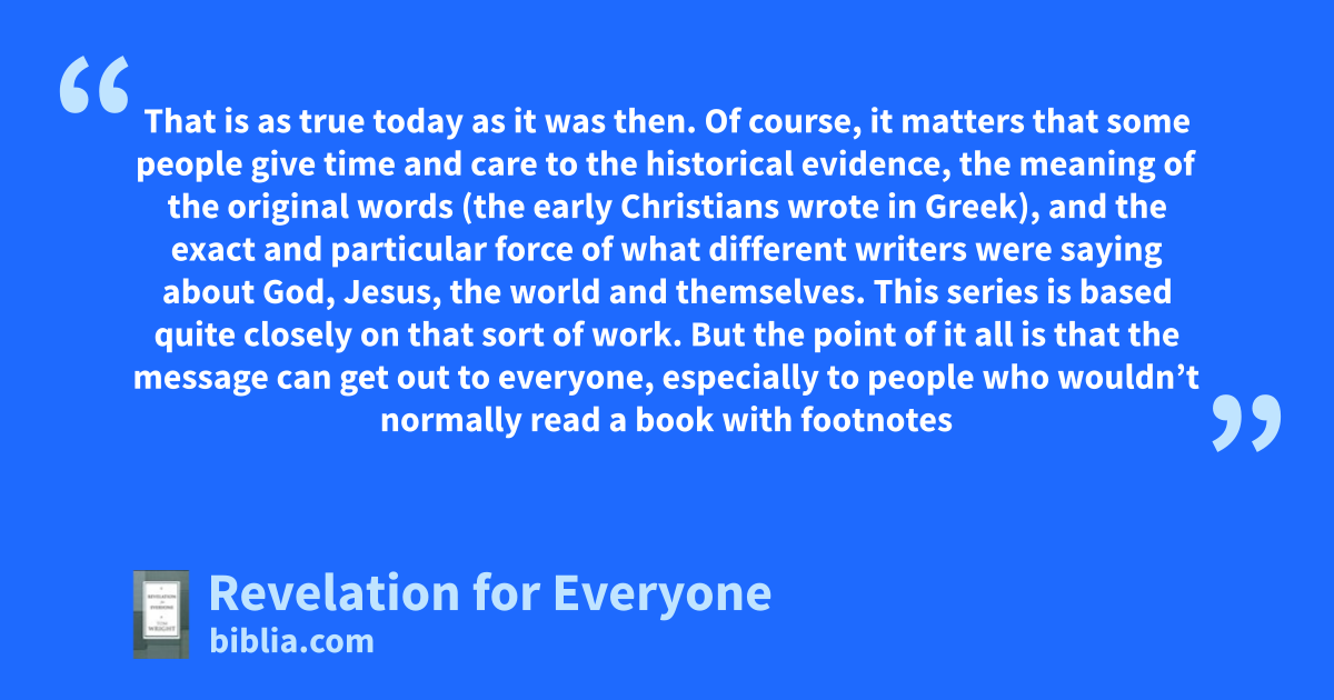 That is as true today as it was then. Of course, it matters that some people give time and care to the historical evidence, the meaning of the original words (the early Christians wrote in Greek), and the exact and particular force of what different writers were saying about God, Jesus, the world and themselves. This series is based quite closely on that sort of work. But the point of it all is that the message can get out to everyone, especially to people who wouldn’t normally read a book with footnotes