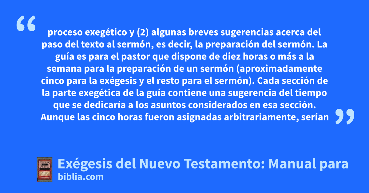 Un curso de instrucción completo, exigente, pero conciso en cómo interpretar textos del Nuevo Testamento. Como guía indispensable y estimulante, este libro está destinado a convertirse en constante compañero de estudiantes y pastores que quieran aprender a cómo analizar exegéticamente el Nuevo Testamento. Este manual trata principalmente el proceso exegético en sí. Un proceso que lo determina...