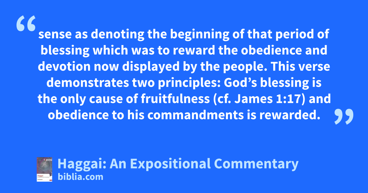 sense as denoting the beginning of that period of blessing which was to reward the obedience and devotion now displayed by the people. This verse demonstrates two principles: God’s blessing is the only cause of fruitfulness (cf. James 1:17) and obedience to his commandments is rewarded.