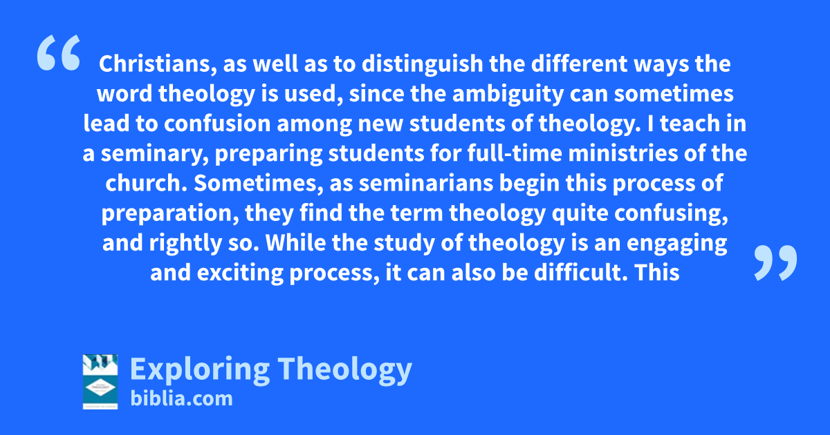 Christians, as well as to distinguish the different ways the word theology is used, since the ambiguity can sometimes lead to confusion among new students of theology. I teach in a seminary, preparing students for full-time ministries of the church. Sometimes, as seminarians begin this process of preparation, they find the term theology quite confusing, and rightly so. While the study of theology is an engaging and exciting process, it can also be difficult. This