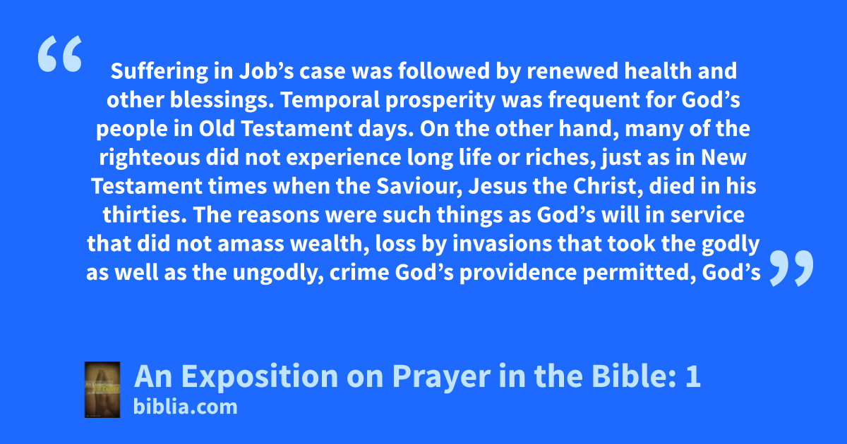 Suffering in Job’s case was followed by renewed health and other blessings. Temporal prosperity was frequent for God’s people in Old Testament days. On the other hand, many of the righteous did not experience long life or riches, just as in New Testament times when the Saviour, Jesus the Christ, died in his thirties. The reasons were such things as God’s will in service that did not amass wealth, loss by invasions that took the godly as well as the ungodly, crime God’s providence permitted, God’s