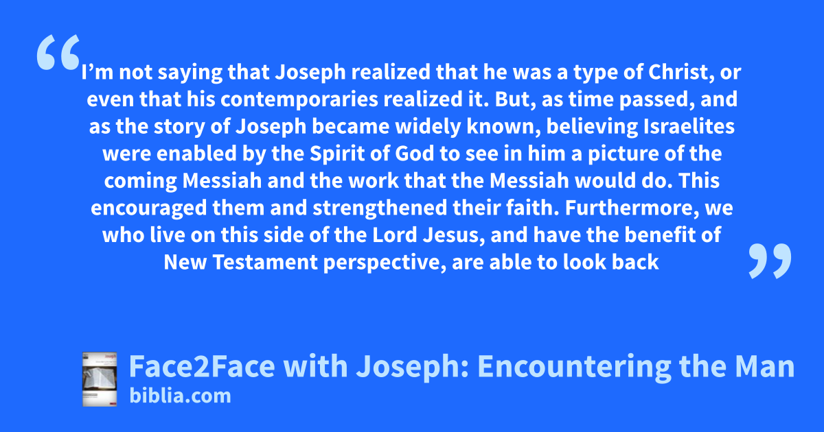 I’m not saying that Joseph realized that he was a type of Christ, or even that his contemporaries realized it. But, as time passed, and as the story of Joseph became widely known, believing Israelites were enabled by the Spirit of God to see in him a picture of the coming Messiah and the work that the Messiah would do. This encouraged them and strengthened their faith. Furthermore, we who live on this side of the Lord Jesus, and have the benefit of New Testament perspective, are able to look back