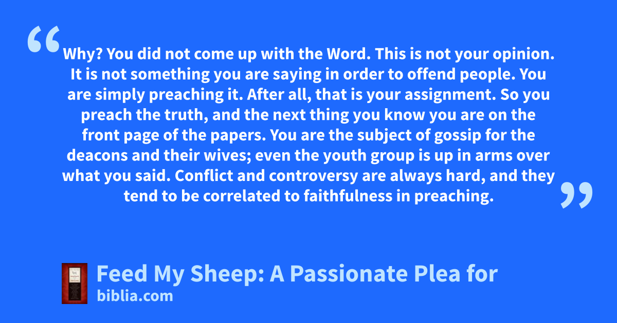 Why? You did not come up with the Word. This is not your opinion. It is not something you are saying in order to offend people. You are simply preaching it. After all, that is your assignment. So you preach the truth, and the next thing you know you are on the front page of the papers. You are the subject of gossip for the deacons and their wives; even the youth group is up in arms over what you said. Conflict and controversy are always hard, and they tend to be correlated to faithfulness in preaching.