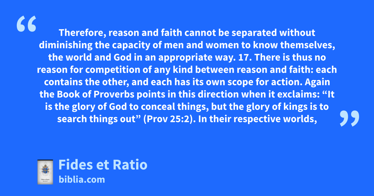 Written in 1998, Fides et Ratio (Faith and Reason) is Pope John Paul II’s treatment of the relationship between faith and reason. The pope re-iterates the Church’s teaching that faith and reason are not only not in conflict, but are in their essences bound up together. Faith without reason tends toward superstition and reason without faith tends toward nihilism. The pope calls for their...