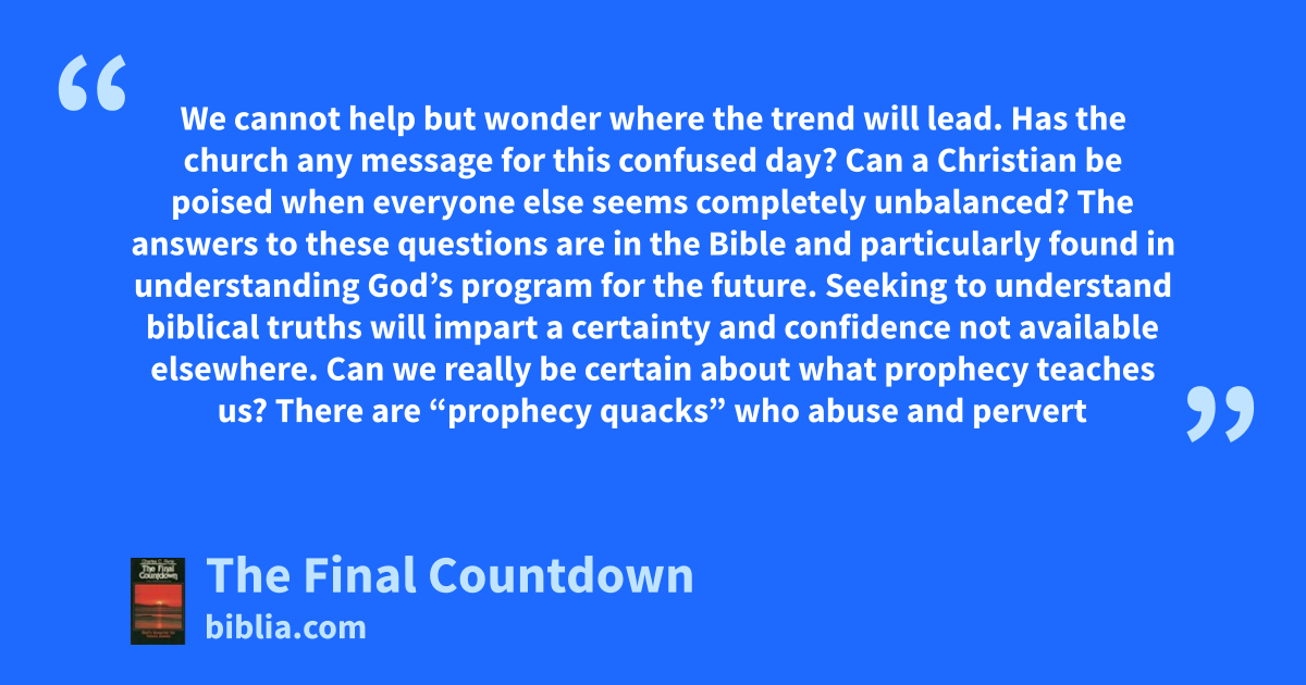 This is a practical book about Bible prophecy and events that will someday be news headlines. You can profit from the study of this book and learn: • How to have confidence in the face of confusion • How to find comfort in times of sorrow • How to help bewildered people find Christ • How to experience cleansing in your life