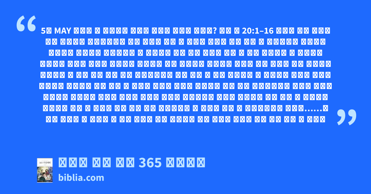 5월 MAY 선행을 상 주신다고 했는데 아무런 가치가 없나요? 성경 마 20:1–16 천국은 마치 품꾼을 얻어 포도원에 들여보내려고 이른 아침에 나간 집 주인과 같으니 그가 하루 한 데나리온씩 품꾼들과 약속하여 포도원에 들여보내고 또 제삼시에 나가 보니 장터에 놀고 서 있는 사람들이 또 있는지라 그들에게 이르되 너희도 포도원에 들어가라 내가 너희에게 상당하게 주리라 하니 그들이 가고 제육시와 제구시에 또 나가 그와 같이 하고 제십일시에도 나가 보니 서 있는 사람들이 또 있는지라 이르되 너희는 어찌하여 종일토록 놀고 여기 서 있느냐 이르되 우리를 품꾼으로 쓰는 이가 없음이니이다 이르되 너희도 포도원에 들어가라 하니라 저물매 포도원 주인이 청지기에게 이르되 품꾼들을 불러 나중 온 자로부터 시작하여 먼저 온 자까지 삯을 주라 하니 제십일시에 온 자들이 와서 한 데나리온씩을 받거늘……내 것을 가지고 내 뜻대로 할 것이 아니냐 내가 선하므로 네가 악하게 보느냐 이와 같이 나중 된 자로서