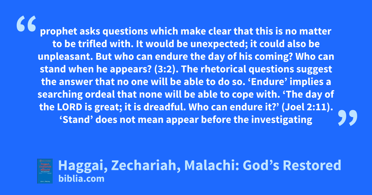 The ministry of Haggai, Zechariah, and Malachi is a record of how God deals with people he has restored as they try to translate their basic loyalty to him into practical action. Restoring their temple and the physical trappings of their ravaged kingdom was not an end in itself. God was, and is, primarily interested in obedient minds and wills in people who have a heart for God.