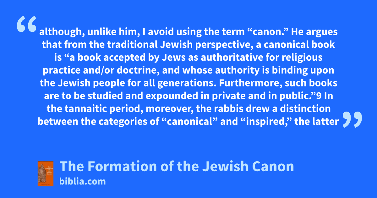 although, unlike him, I avoid using the term “canon.” He argues that from the traditional Jewish perspective, a canonical book is “a book accepted by Jews as authoritative for religious practice and/or doctrine, and whose authority is binding upon the Jewish people for all generations. Furthermore, such books are to be studied and expounded in private and in public.”9 In the tannaitic period, moreover, the rabbis drew a distinction between the categories of “canonical” and “inspired,” the latter