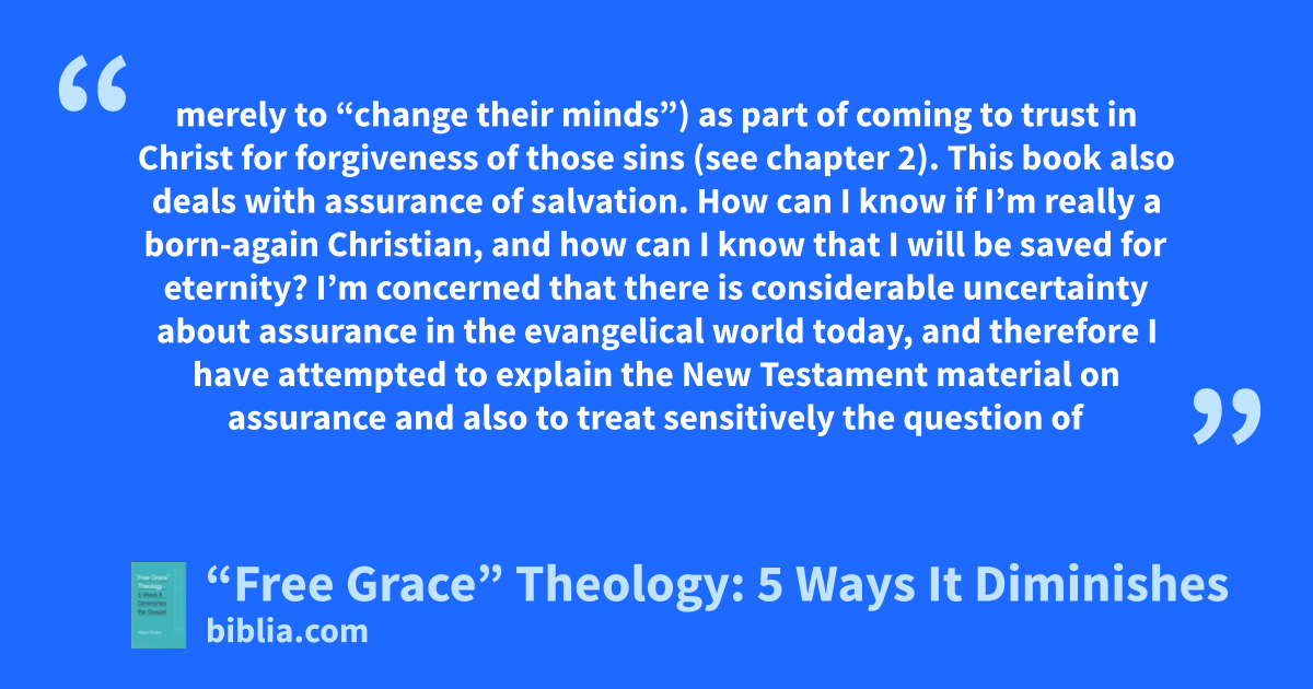 merely to “change their minds”) as part of coming to trust in Christ for forgiveness of those sins (see chapter 2). This book also deals with assurance of salvation. How can I know if I’m really a born-again Christian, and how can I know that I will be saved for eternity? I’m concerned that there is considerable uncertainty about assurance in the evangelical world today, and therefore I have attempted to explain the New Testament material on assurance and also to treat sensitively the question of