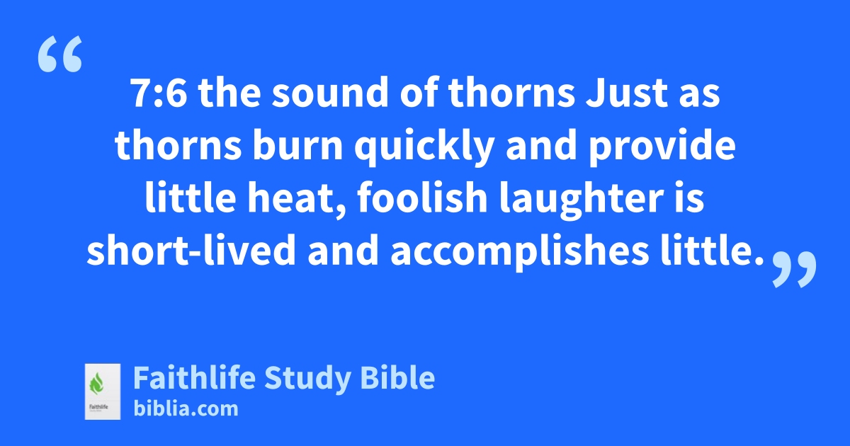 7:6 the sound of thorns Just as thorns burn quickly and provide little heat, foolish laughter is short-lived and accomplishes little.