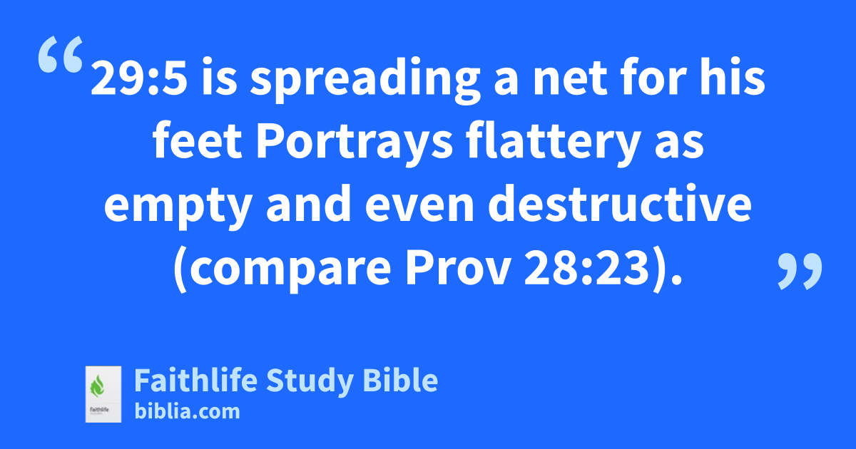 29:5 is spreading a net for his feet Portrays flattery as empty and even destructive (compare Prov 28:23).