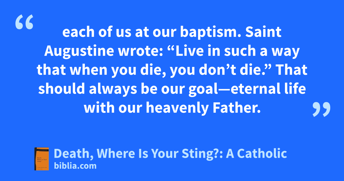 each of us at our baptism. Saint Augustine wrote: “Live in such a way that when you die, you don’t die.” That should always be our goal—eternal life with our heavenly Father.