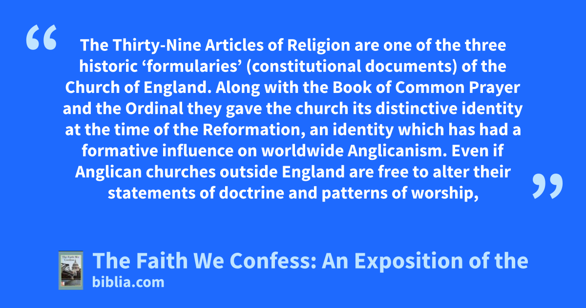 The Thirty-Nine Articles of Religion are one of the three historic ‘formularies’ of the Church of England. Along with the Book of Common Prayer and the Ordinal they gave the church its distinctive identity at the time of the Reformation, an identity which has had a formative influence on worldwide Anglicanism. Many parts of the Anglican Communion some have returned to these sources to satisfy a...
