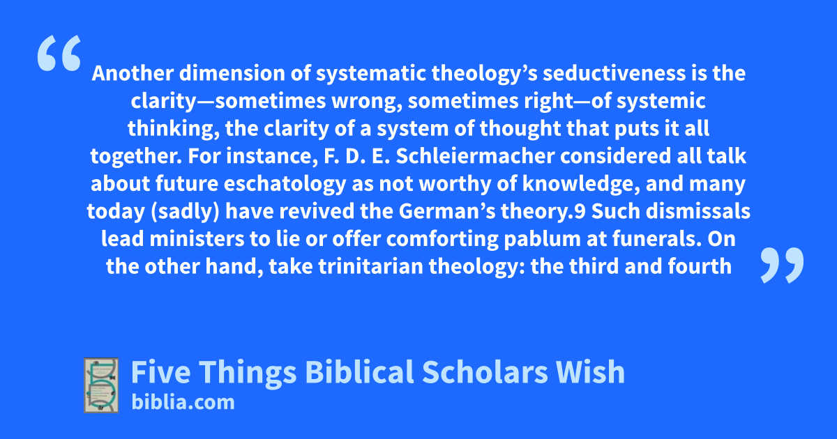 The disciplines of biblical studies and theology should serve each other, and they should serve both the church and the academy together. But the relationship between them is often marked by misunderstandings, methodological differences, and cross-discipline tension. New Testament scholar Scot McKnight here highlights five things he wishes theologians knew about biblical studies. In a companion...