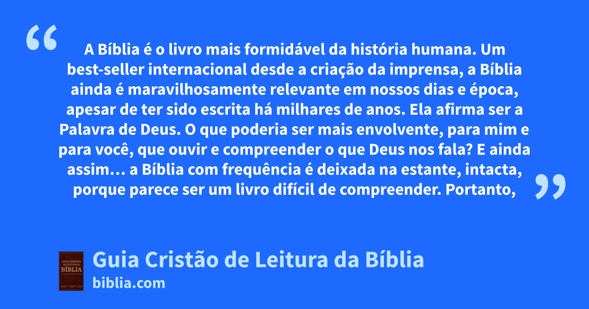A Bíblia é o livro mais formidável da história humana. Um best-seller internacional desde a criação da imprensa, a Bíblia ainda é maravilhosamente relevante em nossos dias e época, apesar de ter sido escrita há milhares de anos. Ela afirma ser a Palavra de Deus. O que poderia ser mais envolvente, para mim e para você, que ouvir e compreender o que Deus nos fala? E ainda assim… a Bíblia com frequência é deixada na estante, intacta, porque parece ser um livro difícil de compreender. Portanto,