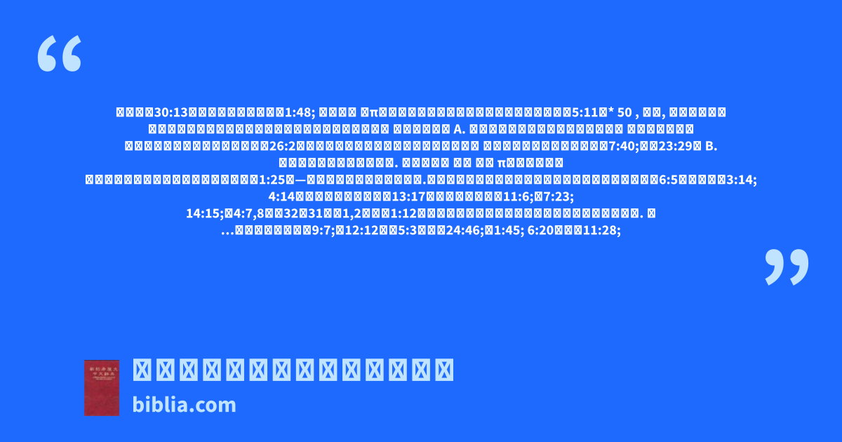 某人(創30:13),或τὶ某事物,路1:48; τοὺς ὑπομείναντας那些顯出忍耐的人,雅5:11。* 50 , ία, ιον形容詞 有福的,幸運的,快樂的,通常有接到神恩惠特權意義。 一、人類的: A. 宗教的色彩較不明顯,ἥγημαι ἐμαυτὸν μακάριον我實為萬幸,徒26:2。未再婚的寡婦,μακαριωτέρα ἐστίν她更有福氣,林前7:40;參路23:29。 B. 具有較明顯的宗教意義。μ. εἶναι ἐν τῇ ποιήσει αὐτοῦ在他所行的事上必然蒙福,雅1:25。—在各式句子的連接,屬於μ.的連繫詞通常都被省略:例如一個條件句的結論句,路6:5異版;彼前3:14; 4:14。隨後有條件子句,約13:17。帶關係子句,太11:6;路7:23; 14:15;羅4:7,8(詩32〔31〕:1,2);雅1:12。做一個述詞帶實名詞,或實名形容詞,或分詞,μ. ὁ …的人有福了(代下9:7;但12:12)太5:3以下;24:46;路1:45; 6:20以下;11:28;