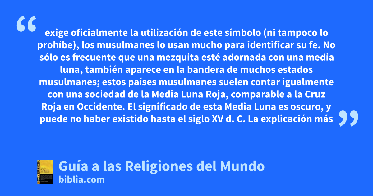 exige oficialmente la utilización de este símbolo (ni tampoco lo prohíbe), los musulmanes lo usan mucho para identificar su fe. No sólo es frecuente que una mezquita esté adornada con una media luna, también aparece en la bandera de muchos estados musulmanes; estos países musulmanes suelen contar igualmente con una sociedad de la Media Luna Roja, comparable a la Cruz Roja en Occidente. El significado de esta Media Luna es oscuro, y puede no haber existido hasta el siglo XV d. C. La explicación más