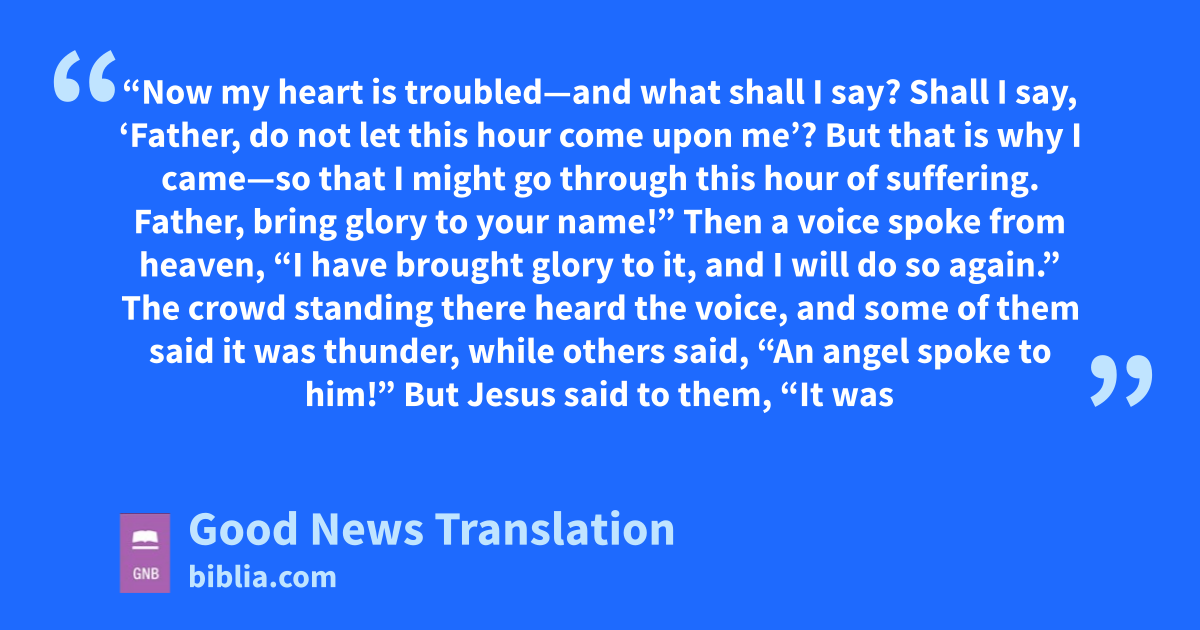 27 “Now my heart is troubled—and what shall I say? Shall I say, ‘Father, do not let this hour come upon me’? But that is why I came—so that I might go through this hour of suffering. 28Father, bring glory to your name!”