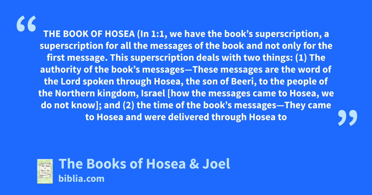 The unfortunate title “The Minor Prophets” has caused many Bible readers to neglect the study of the twelve books grouped under this heading. Therefore, the glory and riches of these books are unknown to the average reader. He has failed to benefit from the major messages of these “Minor Prophets.” Hosea and Joel, the two books of “the Minor Prophets” considered in this commentary, are great and...