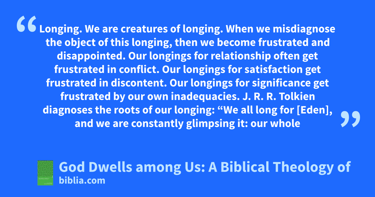 Longing. We are creatures of longing. When we misdiagnose the object of this longing, then we become frustrated and disappointed. Our longings for relationship often get frustrated in conflict. Our longings for satisfaction get frustrated in discontent. Our longings for significance get frustrated by our own inadequacies. J. R. R. Tolkien diagnoses the roots of our longing: “We all long for [Eden], and we are constantly glimpsing it: our whole